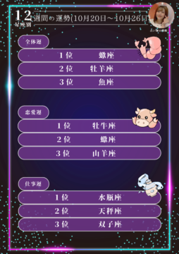 恋愛運🥇牡牛座🥈蟹座🥉山羊座