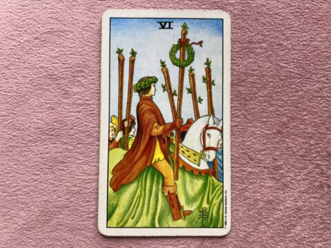 ワンドの6のタロットカード。勝利や評価を意味します。今週は、あなたが勇気を出した分だけ本当の味方が残るはず。意思あるところに道は開けます。言いにくいことも言ってみましょう。