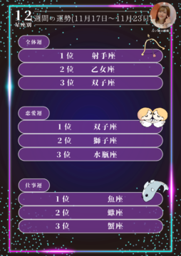 明蘭が占う今週の恋愛・仕事の運勢🌟12星座タロット占いランキング🔮(今週2025年11月17日〜11月23日の運勢)