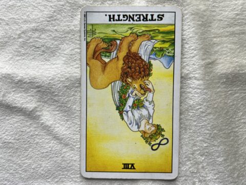 力の逆位置のタロットカード。完全燃焼を意味します。これまでが相当過酷だったことでしょう。今週からは、力を入れるより抜くほうが状況が整い、流れがスムーズになります。