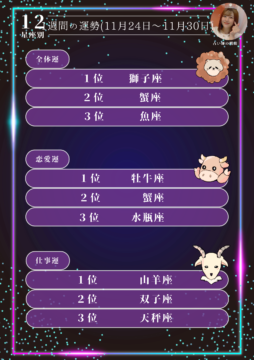 恋愛運🥇牡牛座🥈蟹座🥉水瓶座