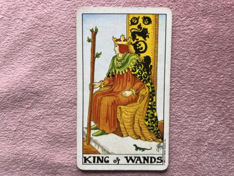 ワンドのキングのタロットカード。自信を持って行動することを意味します。今週は、あなたが主導権を握ると物事が良い方向に動きます。決めたいことは先延ばしにしないでくださいね。