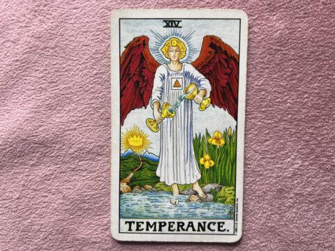 節制のタロットカード。調和やバランスを大切にすることを意味します。自然な流れを受け入れることで、あなたにとって最善の道が整っていきます。