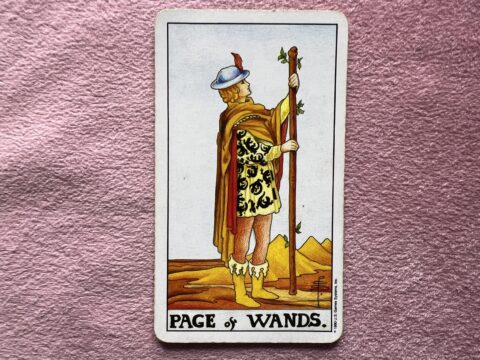 ワンドのページのタロットカード。新しい挑戦へ踏み出す勇気を意味します。気になっていることや始めたいことは、小さくても行動に移してみてくださいね。