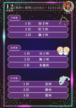 明蘭が占う今週の恋愛・仕事の運勢🌟12星座タロット占いランキング🔮(今週2025年12月8日〜12月14日の運勢)