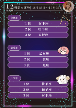 明蘭が占う今週の恋愛・仕事の運勢🌟12星座タロット占いランキング🔮(今週2025年12月15日〜12月21日の運勢)