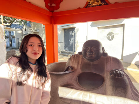 穴八幡宮の境内には、布袋尊が祀られています👏