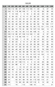 生年月日早見表の数字は、次のように天地星占のタイプに対応しています。