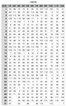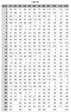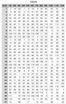 1980年代|天地星占 生年月日早見表